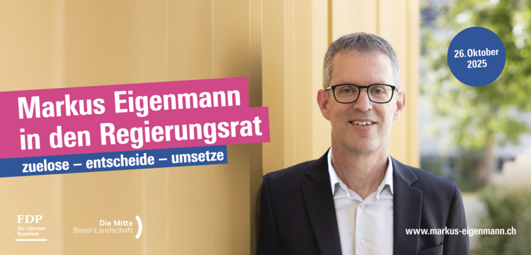 Er steht für eine Politik, die zuhört, abwägt und umsetzt. Markus Eigenmann überzeugt durch Führungsstärke und die Fähigkeit, Menschen einzubinden. Er steht für eine Politik mit Augenmass. Gerade jetzt ist es wichtig, dass möglichst viele an die Urne gehen. Es ist nicht egal, wer in der Regierung des Kantons Baselland Verantwortung übernimmt.